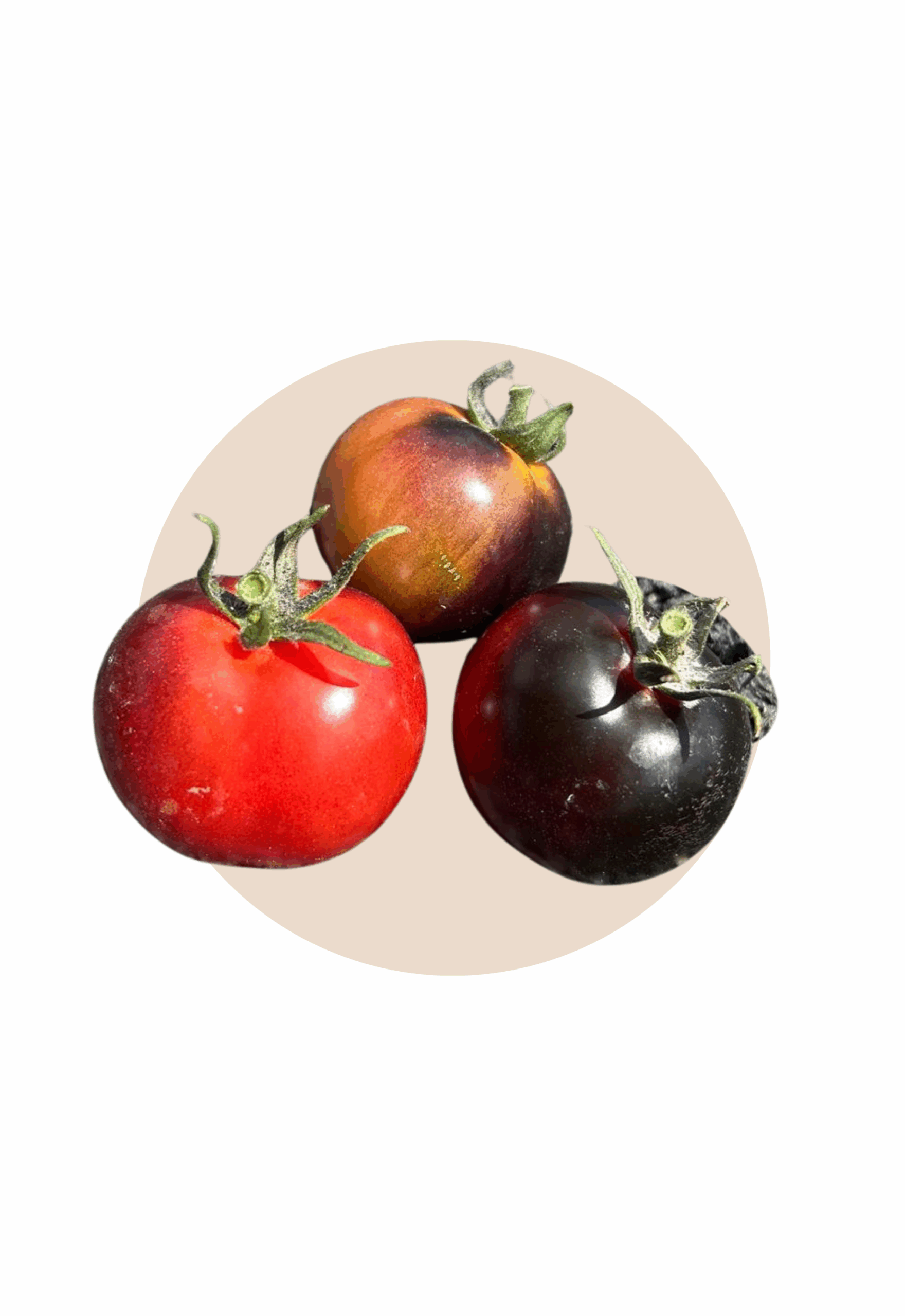 Variedad de tomate de alta calidad, utilizado en ensaladas y platos gourmet. Estilo Kumato